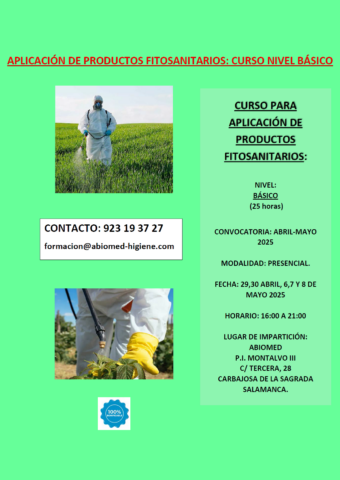 PRÓXIMA CONVOCATORIA DEL CURSO FITOSANITARIO NIVEL BÁSICO 25 H- ABIOMED HIGIENE